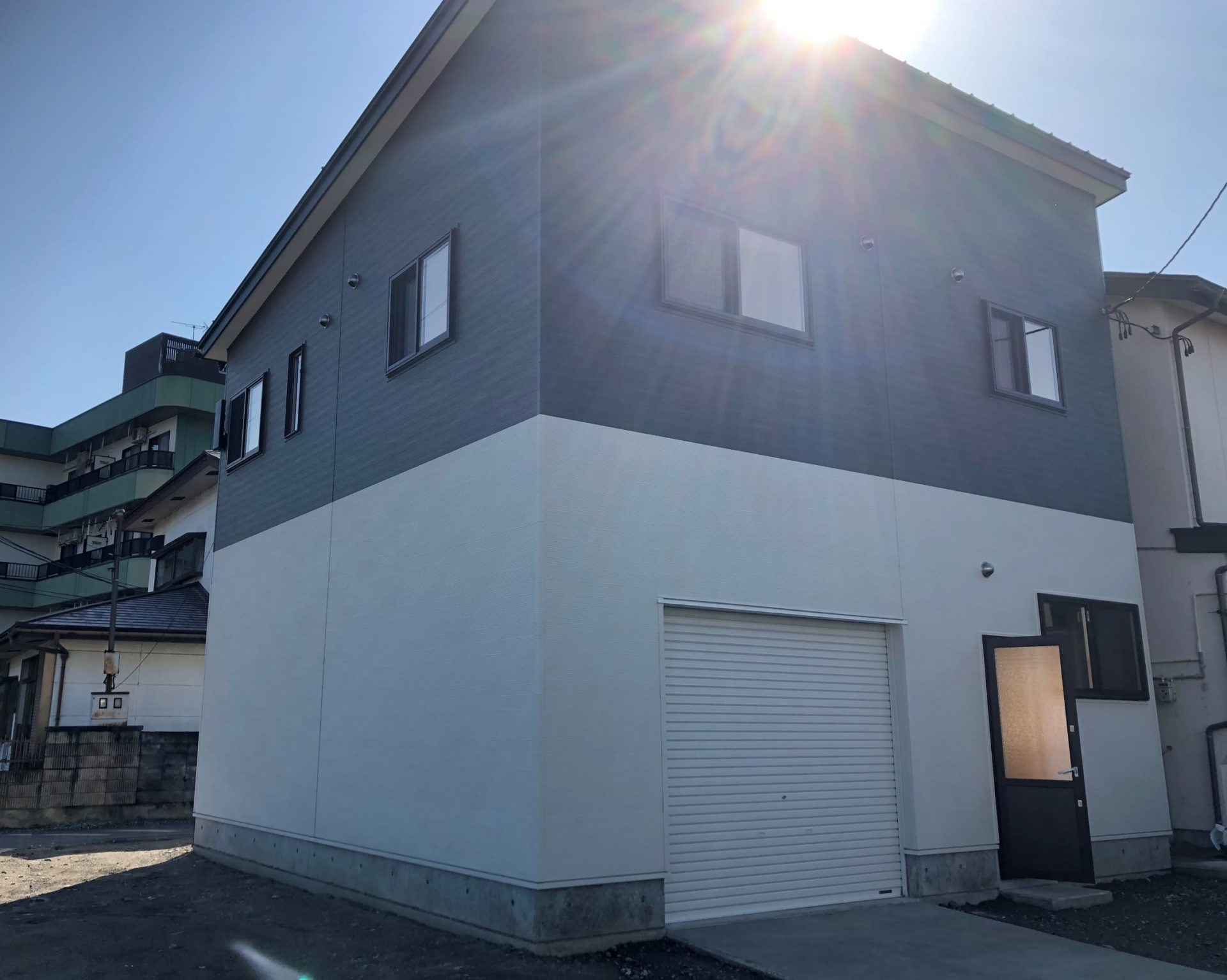 木造2階建(1階ガレージ+休憩室、2階リビング+洋室2)