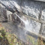 まずは、高圧洗浄で表面の汚れを落としていきます。これだけでも見違えるほど綺麗