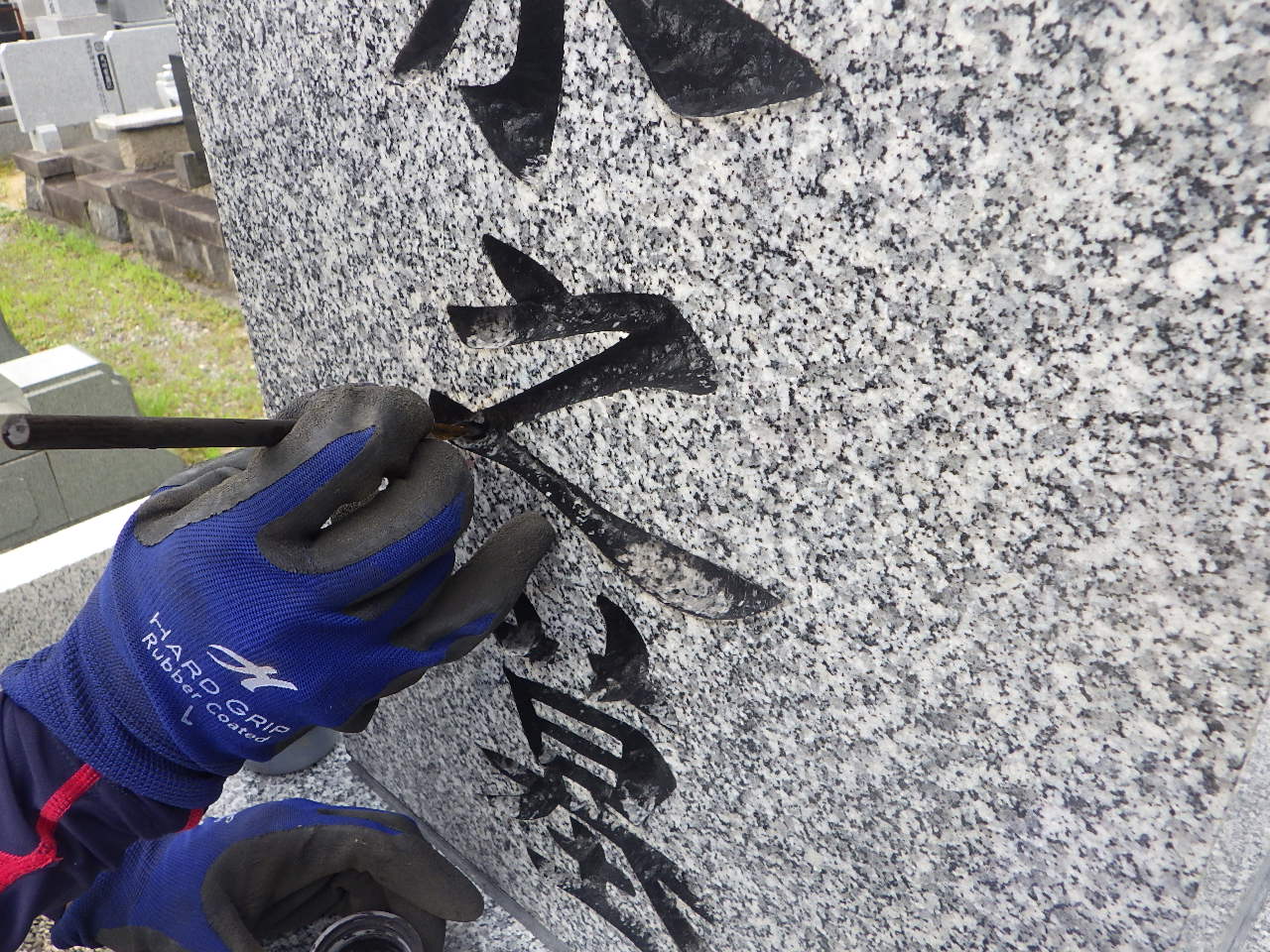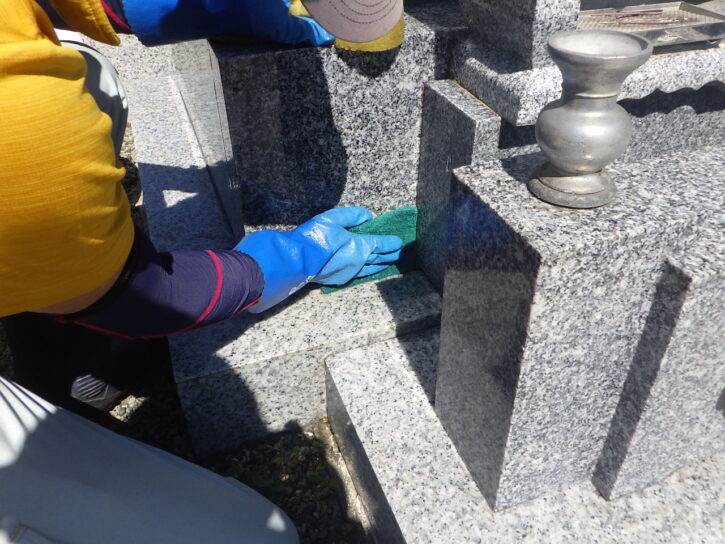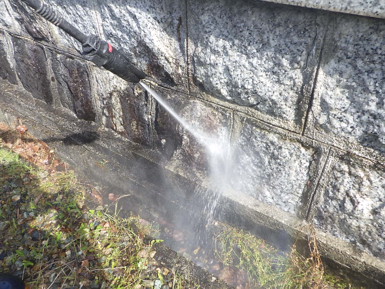 頑固な汚れや狭い場所は高圧洗浄でも落ちないので、地道に手作業で落としていきま