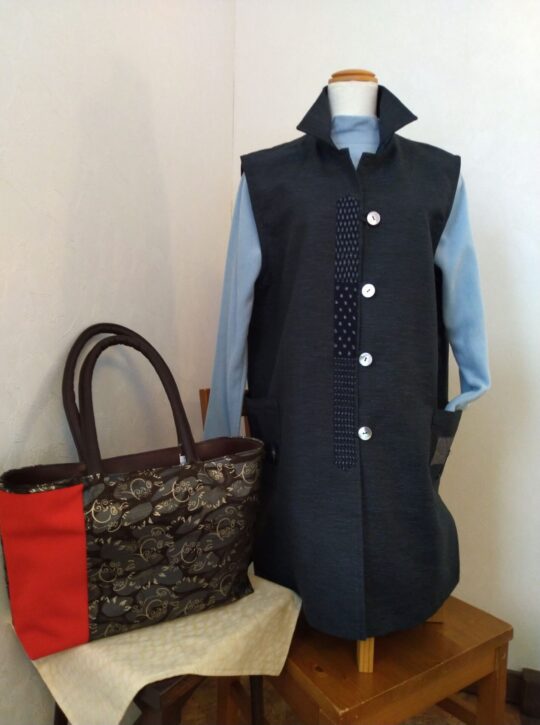 ●赤帯地とプリント革コンビトート price ¥17,000