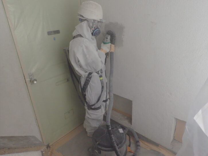 含有されていたことからアスベスト除去を伴う工事となりました。