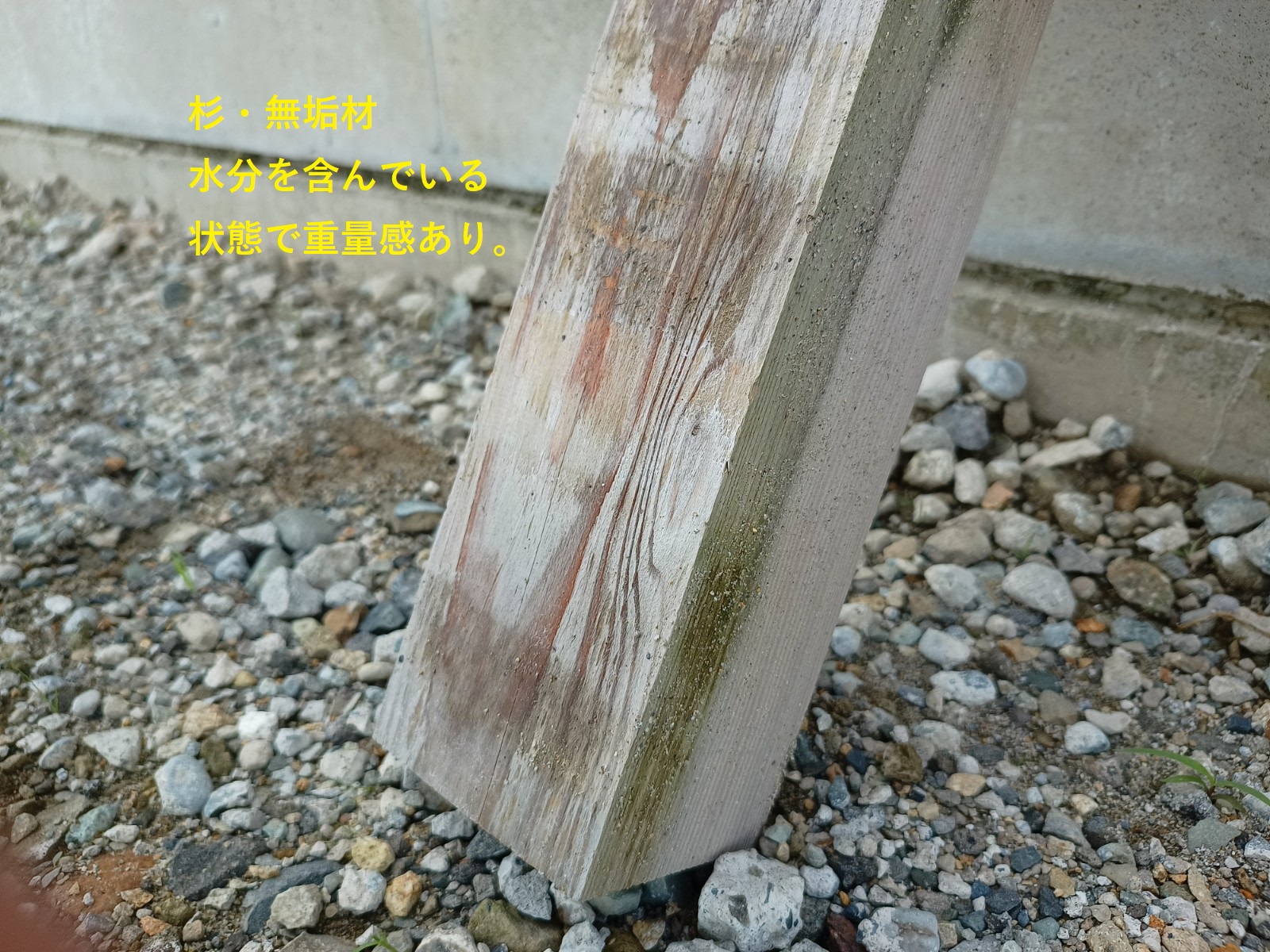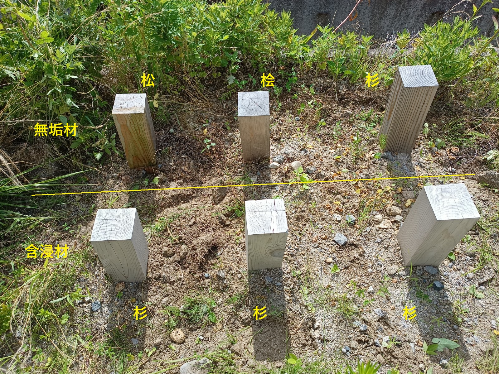 地面より下の状態?はどうでしょうか。同じ時期に工場裏へ設置した木材の画像が