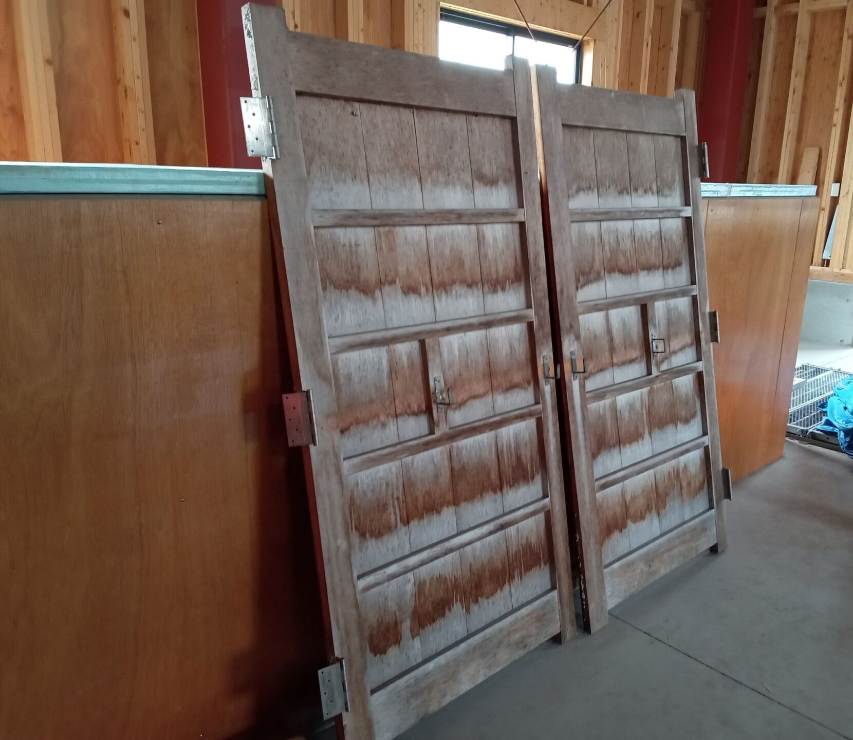 築年数の経った年代物の門扉移設となります。雨水などの吸い込みで変色は進ん