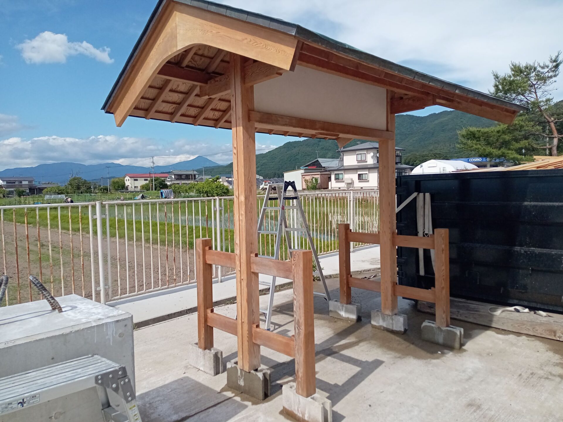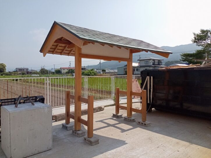 この度は、F様より市内庭園に設置されていた門を液体ガラス施工後に移設する