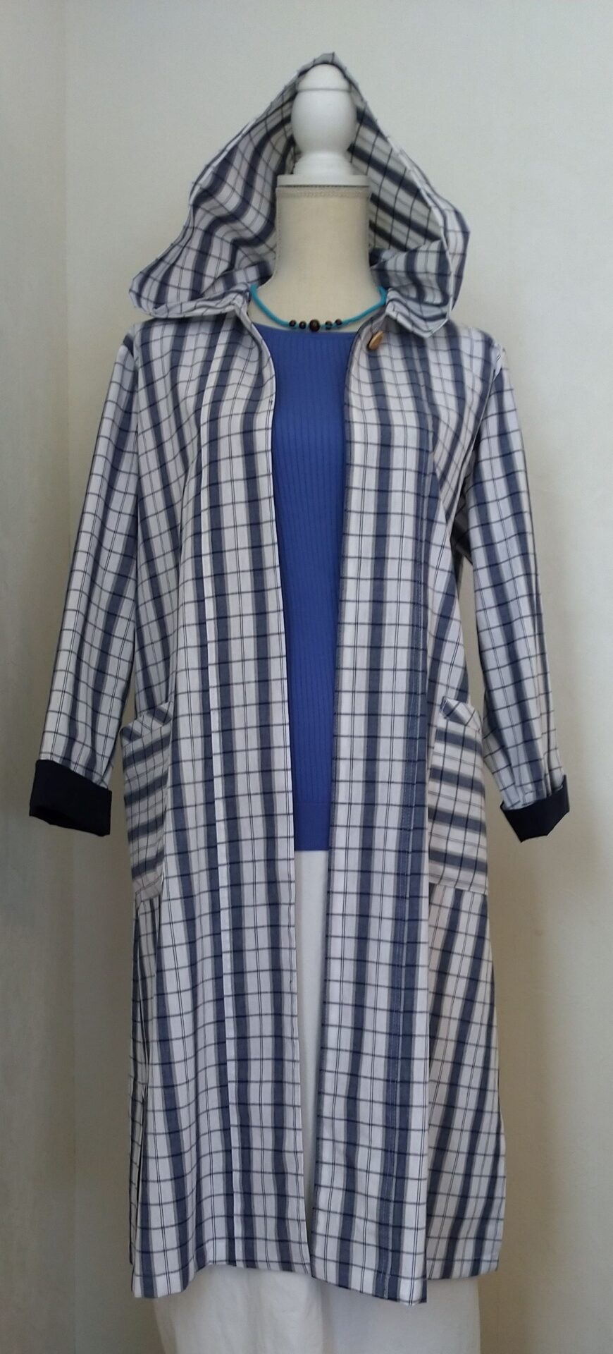 ●フード付きロングコート(コットン100%)¥11,000.-