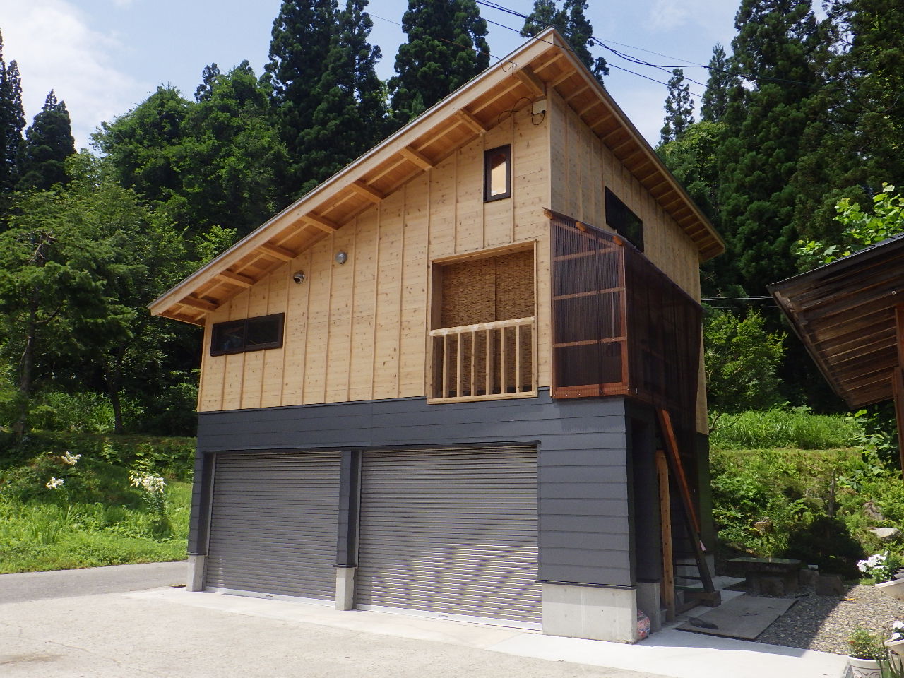 2021年12月、杉板外壁部分を液体ガラスで施工させていただきました。冬季の