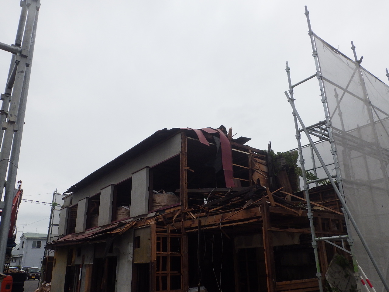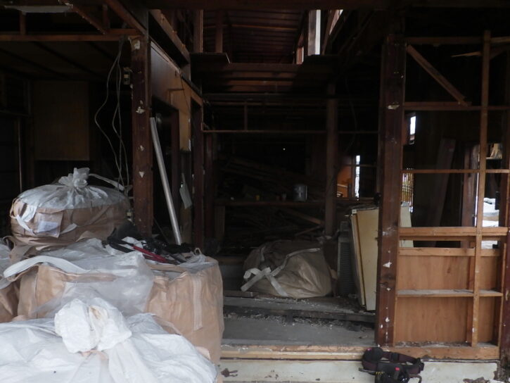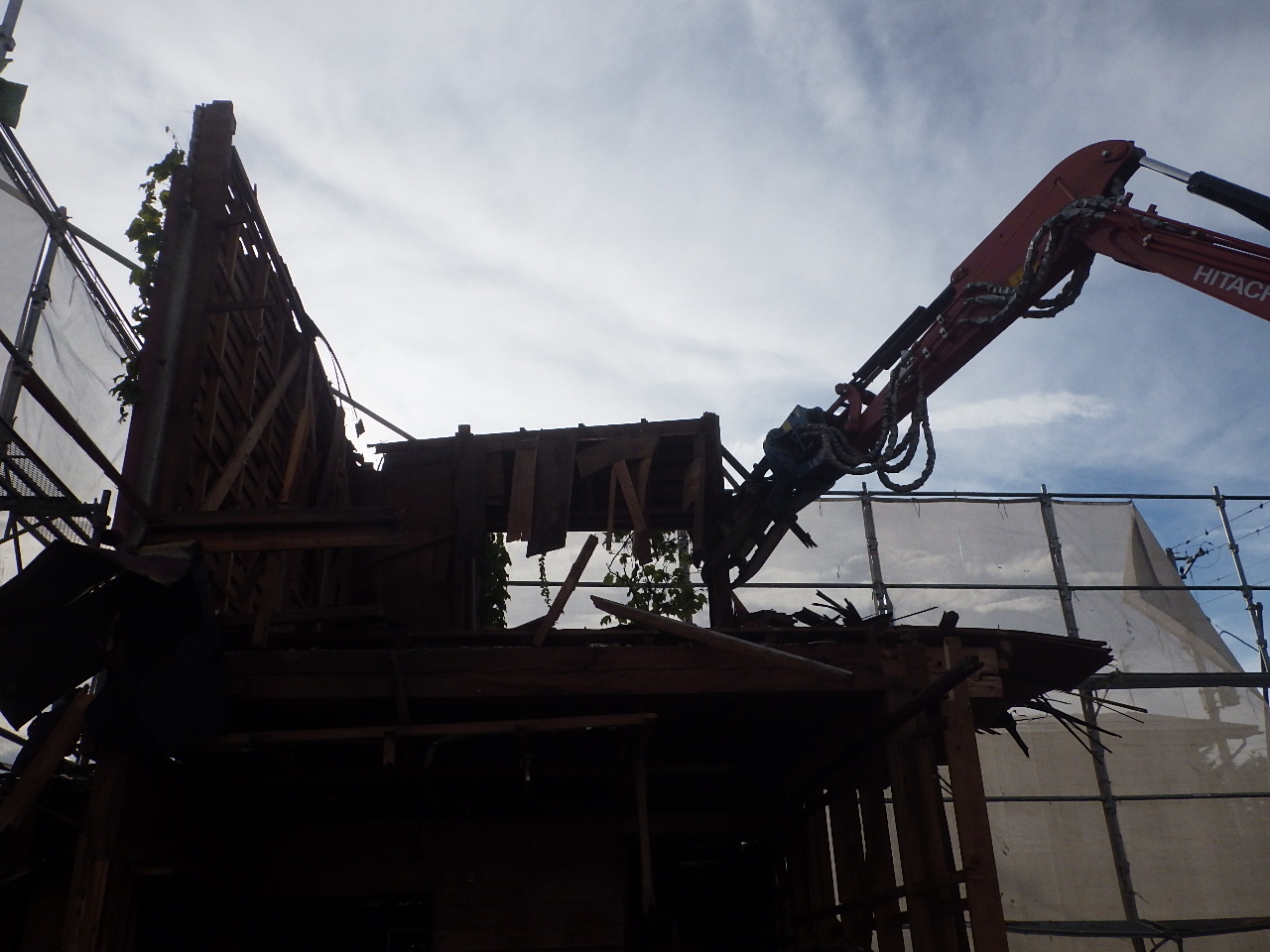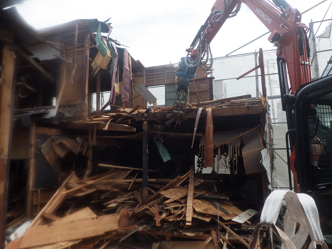 す。アスベスト除去完了後、通常の解体作業が行います。