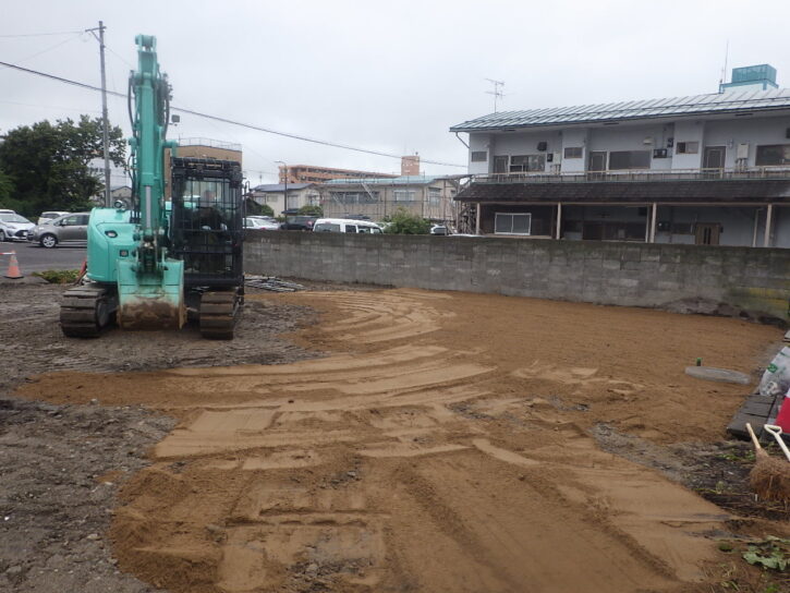 (ご契約の内容により、山砂や砕石を敷き均します。)