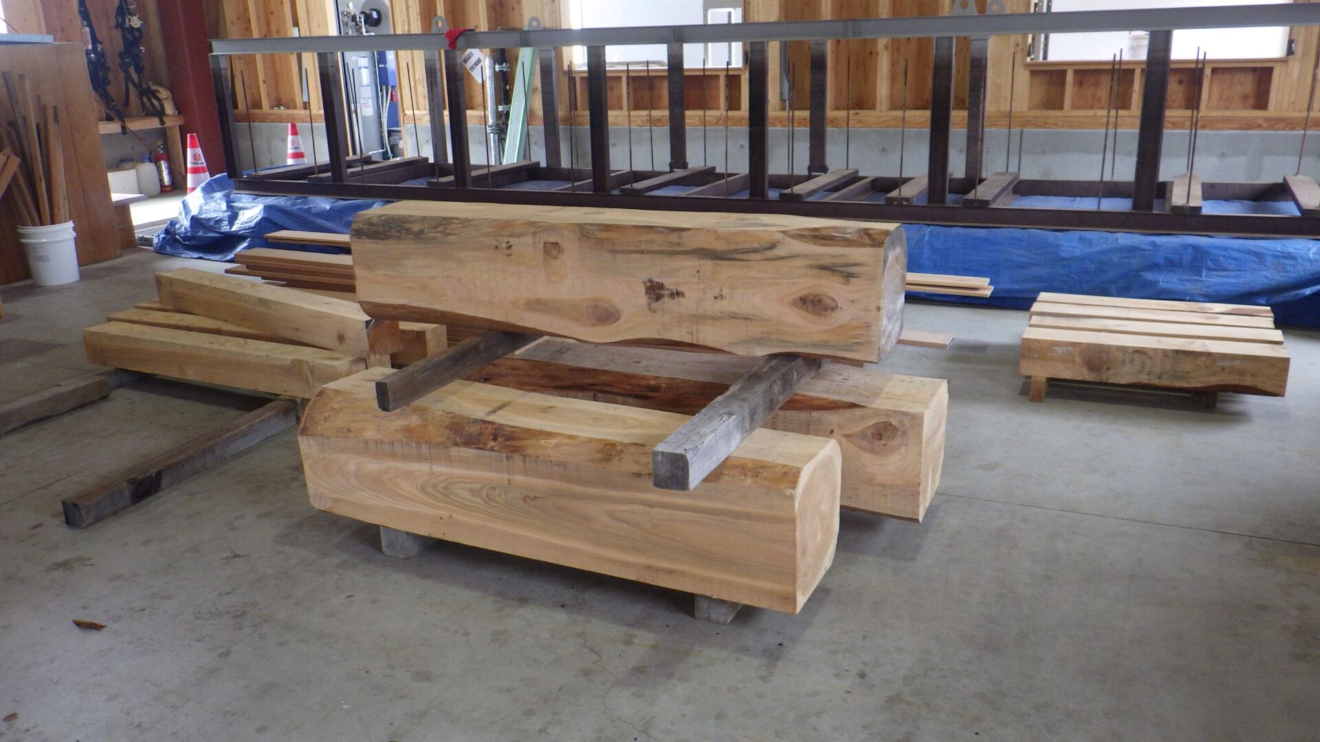 デザインはシンプルに丸太の丸みを残した1本物としました。原木3本か