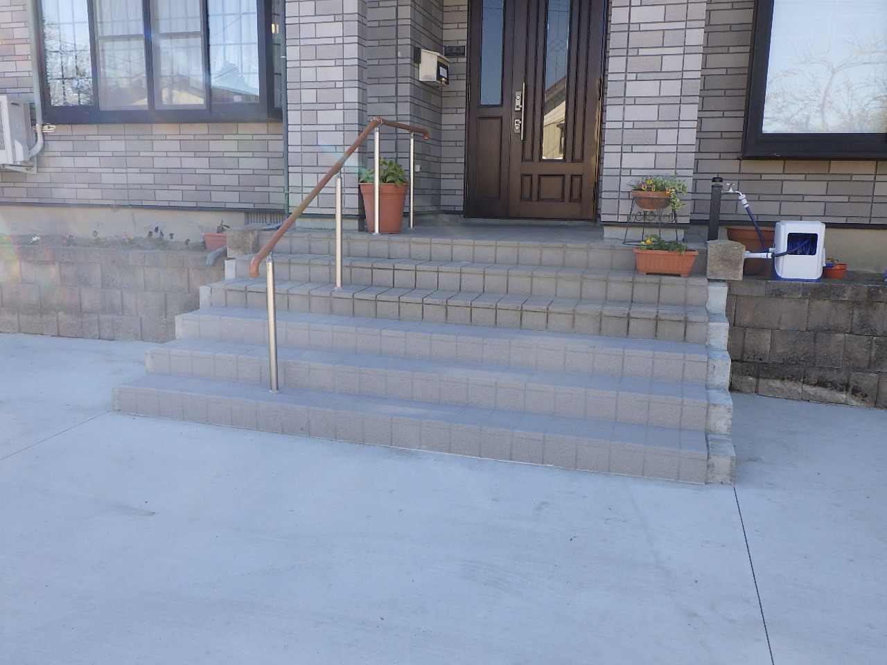 玄関階段の追加、車両の出入りをし易くするための既存構造物の撤去と場所