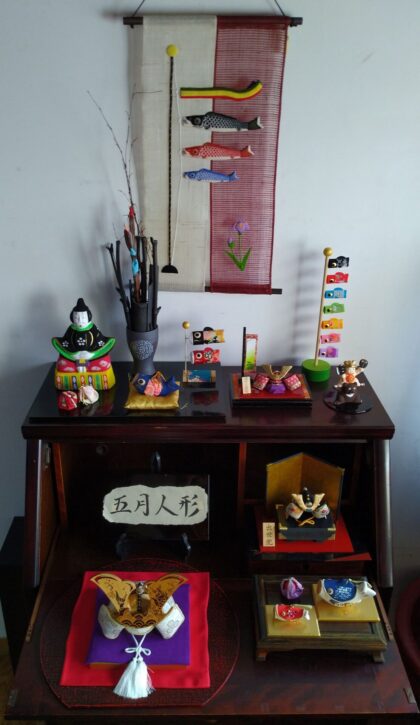 色々なサイズの兜や鯉のぼりがカワイイです。わずかなスペース