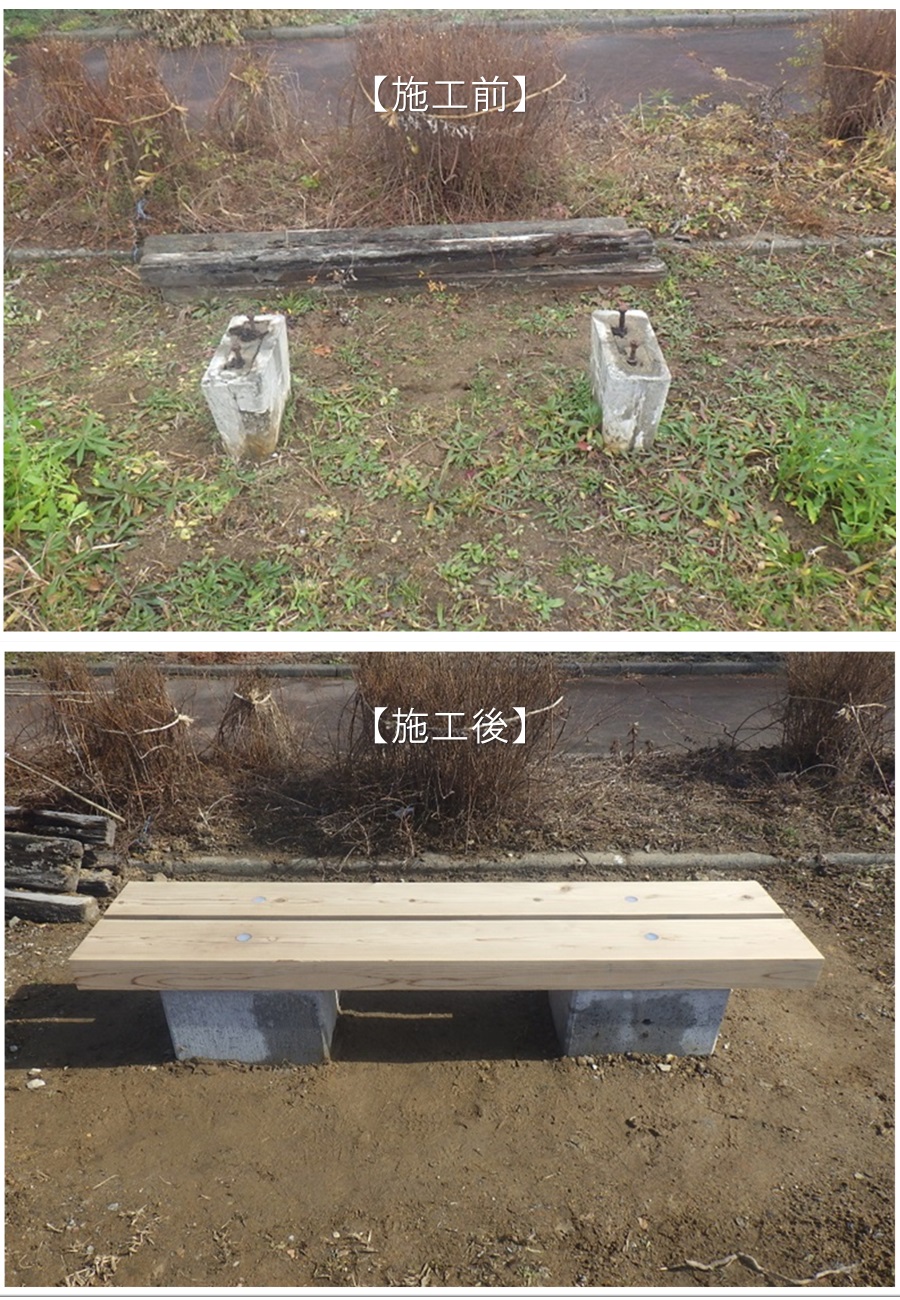 今回は亀公園ベンチ改修工事で完成したベンチの施工前・施工後を紹介いたします