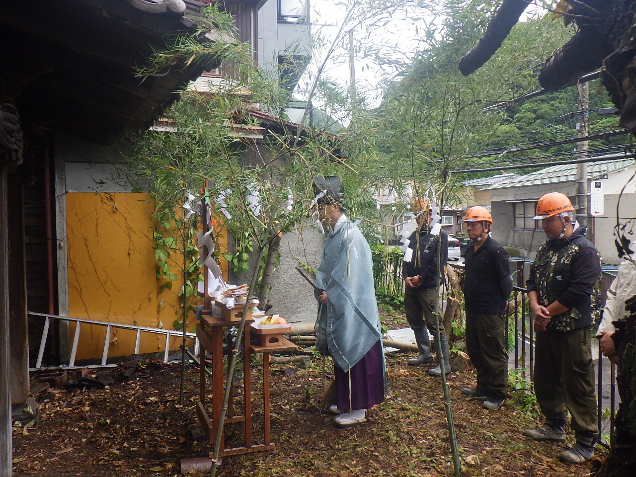 工事着工前に、作業員一同安全に解体工事が行えるよう安全祈願祭もしっかり行いました⛑