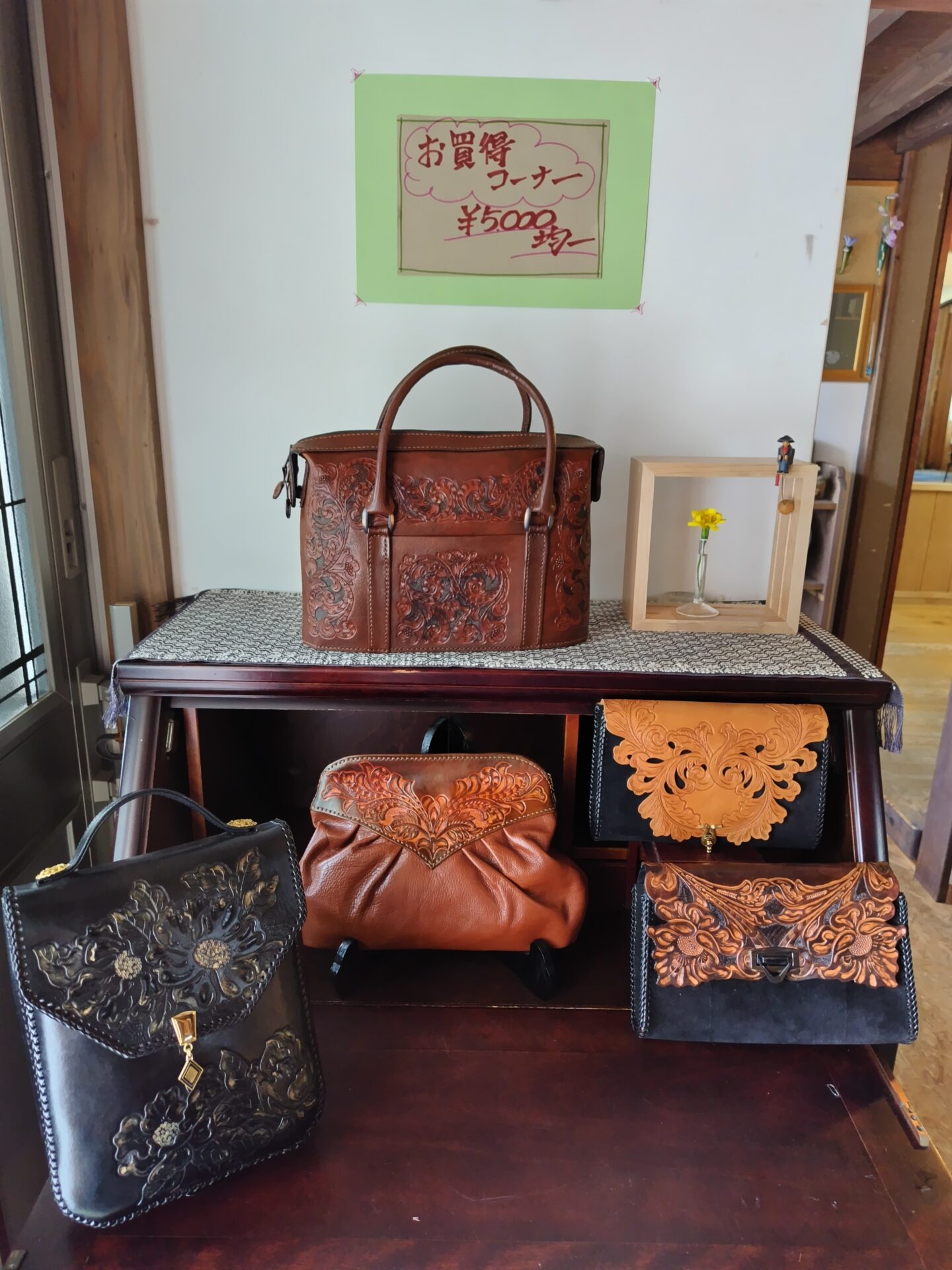 最近朝は肌寒くずいぶんと日も短くなり気候の変化から体調も崩しやすい季節です😶🌫️ 皆様も体調には気を付けてお過ごしください💦🙏 さて、なごみでは10月1日から今月末まで手作りレザークラフト作品の展示販売を 2割引きしています! 手作りという特別感!自分へのご褒美に一つ手に取ってみてはいかがでしょうか🥰 さらに!お買い上げの合計金額(定価)一万円以上の方に抽選でプレゼントを差し上げます👏✨ ぜひ、セール期間中に1度お立ち寄りください☆彡
