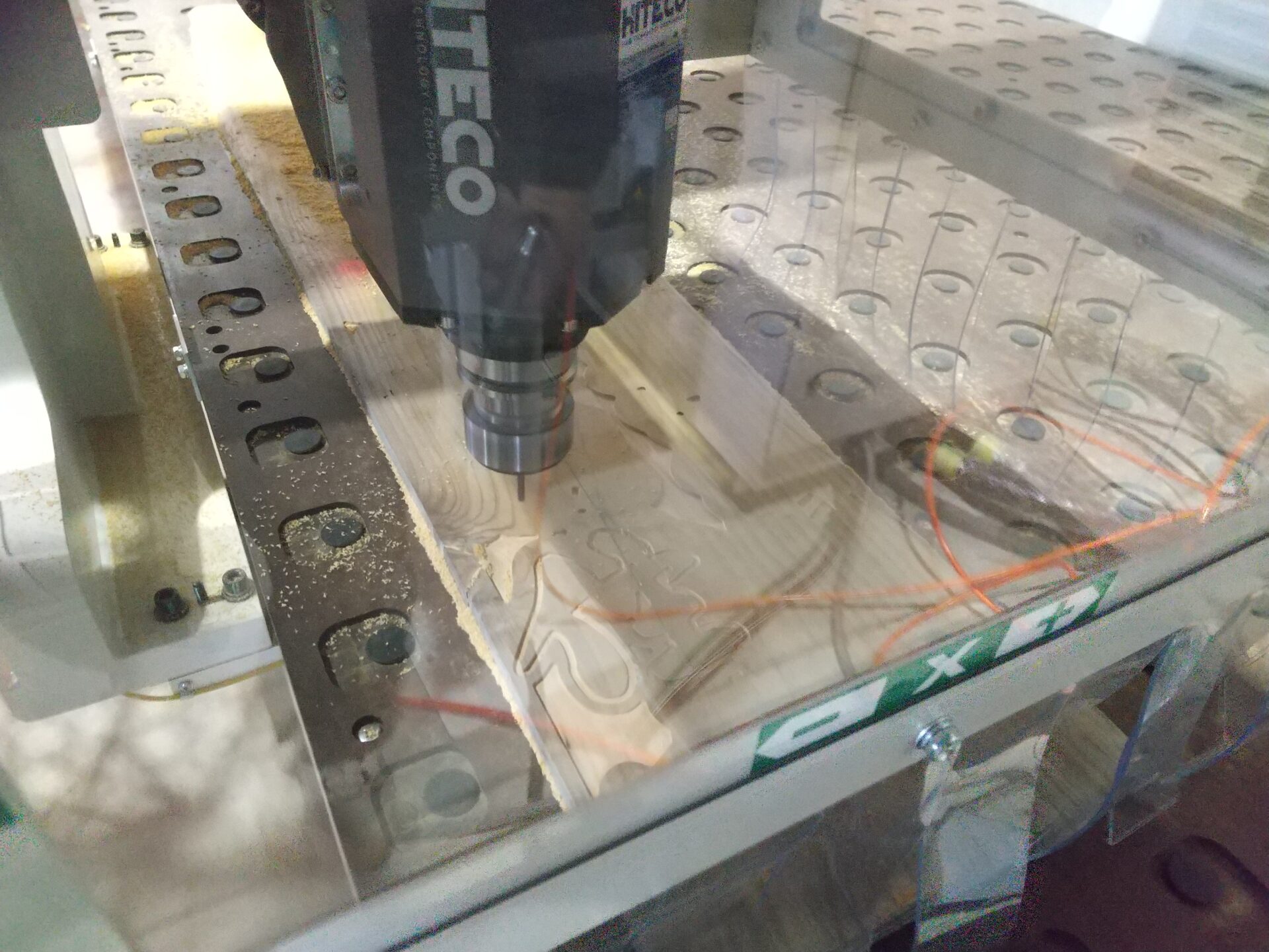 文字部分はNC旋盤で掘り、文字以外の部分はレーザー加工機で出力を調整しながら照射しました