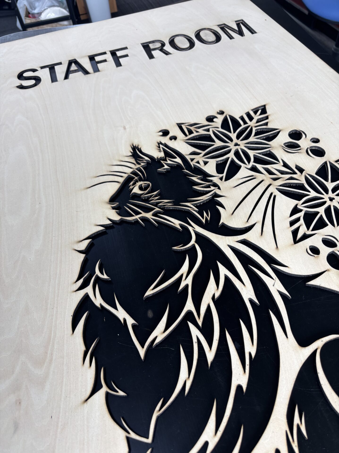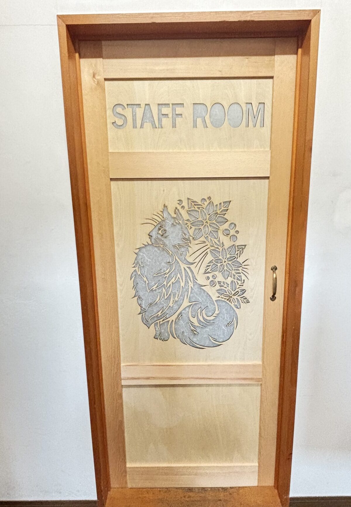 ギャラリー喫茶なごみ様よりレーザー加工機でスタッフルームに続く扉の作成を承りました。