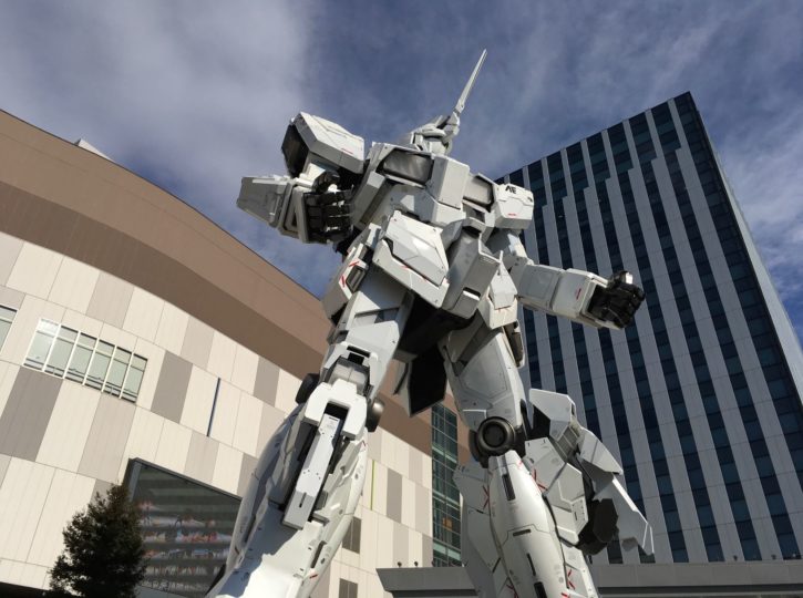 白い機体はガンダムRX-78-2のトリコロールと対照的な印象。実物大はやはり圧巻です。