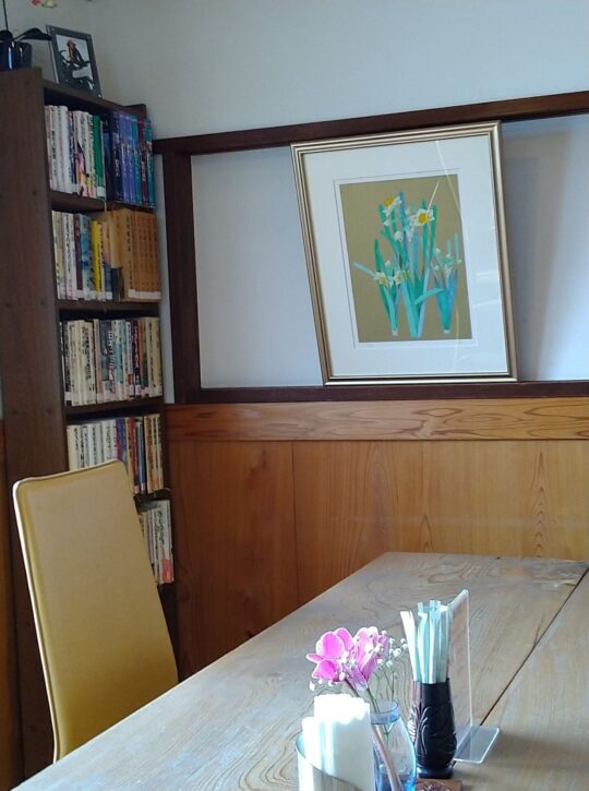 店内の絵画を桜に変えてみました。「サクラ」という魔法の言葉は色々と感じ