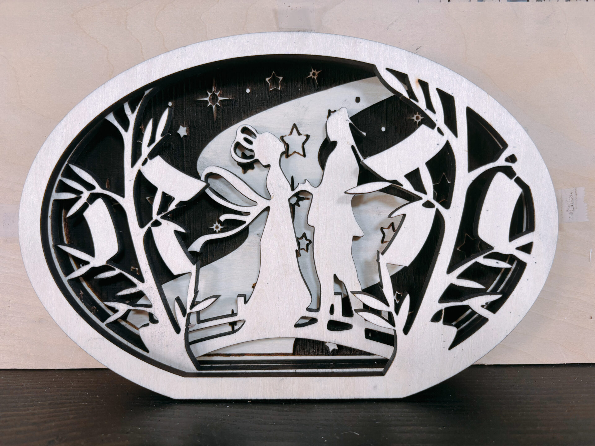 そんな七夕の日にちなんで弊社にあるレーザー加工機をつかってシャドーボックスの試作を作っていました!